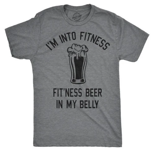 Crazy Dog Men’s Graphic T-Shirt “I’m Into Fitness” Beer Joke Gray Size XL