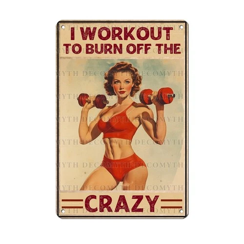 Vintage Girl Gym Tin Sign I Workout to Burn off The Crazy Retro Fitness Wall ...