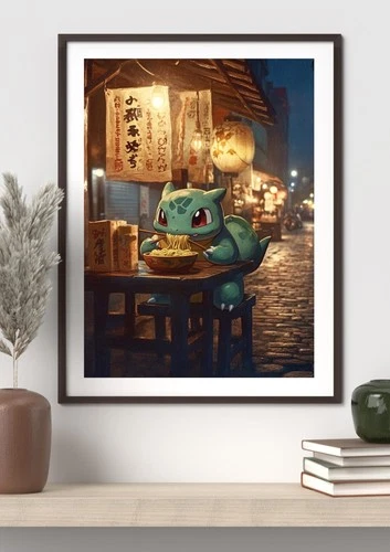 Japanese Plant Creature Wall Art Print, Anime Style Poster Decor