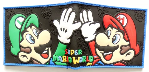 Super Mario Wallet Luigi High Five 3D imprint id window card slots zip pocket