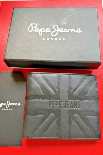 Pepe Jeans Black Leather Bifold wallet with Union Jack Imprint - BNIB