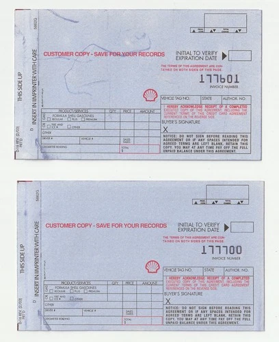 Pack of 100 Shell Oil Co 3 Part Manual imprinter Credit Card Forms