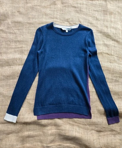 Crew Clothing Colourblock Jumper | Navy & Purple Cotton Cashmere | Coastal