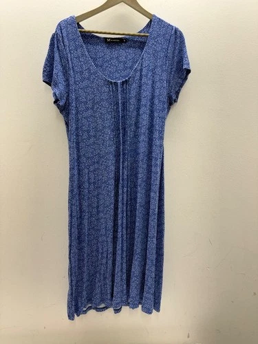 CREW CLOTHING CO ladies blue and white floral print long dress UK16- CG O04