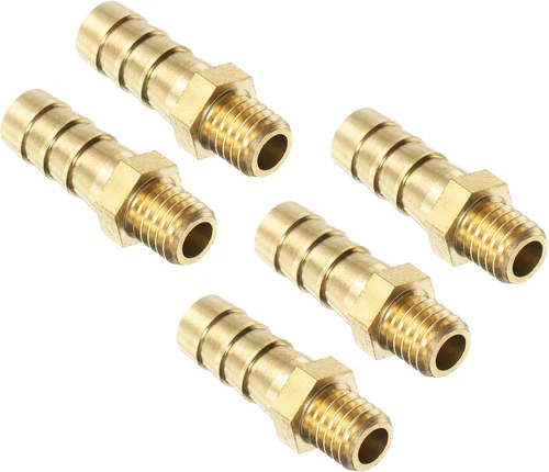 5Pcs Brass Hose Barb Fittings Metric M8-1.25 Male to Barb Fit Hose ID 8Mm Barbed