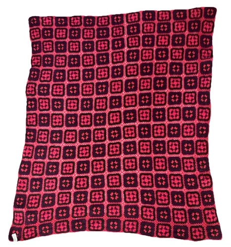 Crochet Granny Square Throw Blanket Cottagecore Red Pink Black Purple 57"X65"