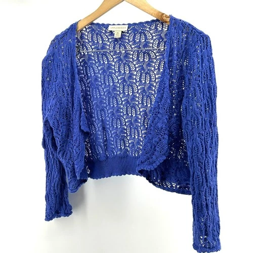 Appleseed's Blueberry Crochet Knit Cardigan Sweater XL Open Knit Summer Y2K