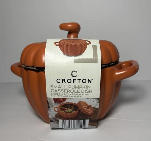 NEW Crofton 0.8 Qt Small Pumpkin Casserole Dish w/Lid Oven Safe To 450 Degrees