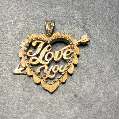 Sterling Silver 925 Lot Necklace Pendant U39 I Love You Heart Gold Tone Arrow