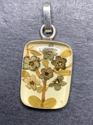 Sterling Silver 925 Lot Necklace Pendant U42 Flower Bouquet Rectangle Resin Love