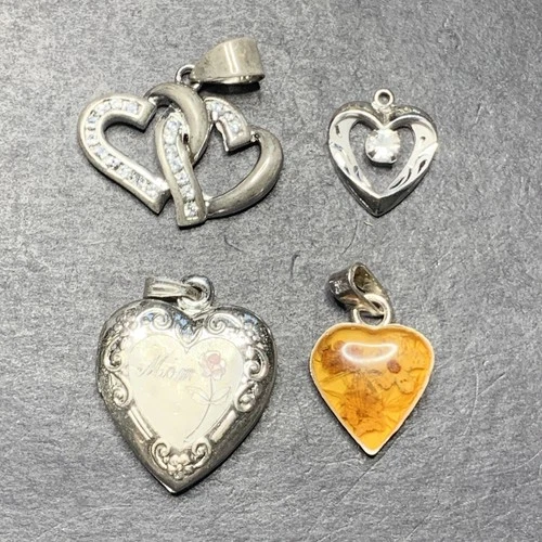 Sterling Silver 925 Lot Necklace Pendant U40 Flower Resin Inlay Locket Hearts