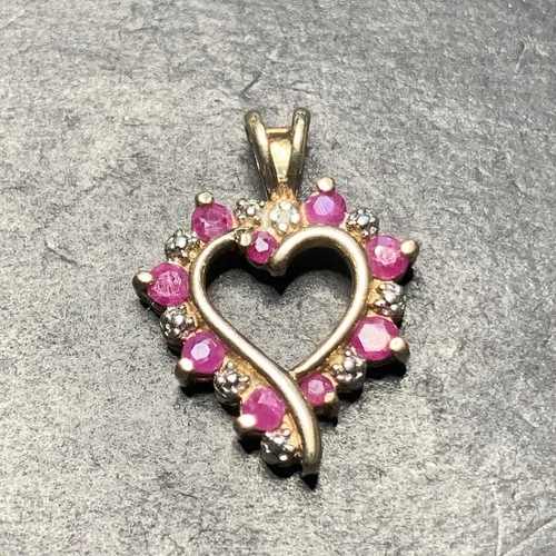 Sterling Silver 925 Lot Necklace Pendant U38 Heart Gold Tone Pink Ruby Love Mom