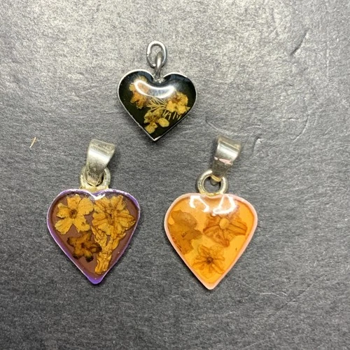 Sterling Silver 925 Lot Necklace Pendant U41 Flower Resin Inlay Heart Charm Love
