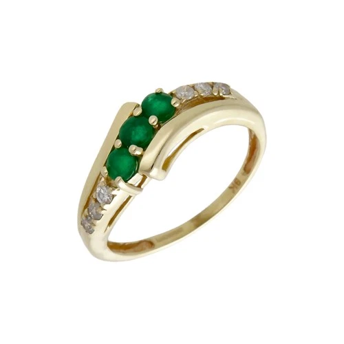 Pre-Owned 9ct Yellow Gold Emerald & Diamond Crossover Wave Ring Size: M 9ct g...