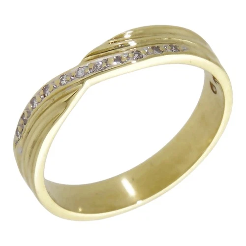 Pre-Owned 18ct Yellow Gold Diamond Set Crossover Wave Ring Size: S½ 18ct gold...