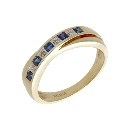 Pre-Owned 9ct Yellow Gold Sapphire & Diamond Crossover Ring Size: N½ 9ct gold...
