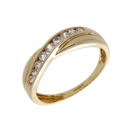 Pre-Owned 9ct Yellow Gold Cubic Zirconia Crossover Wave Ring Size: N 9ct gold...