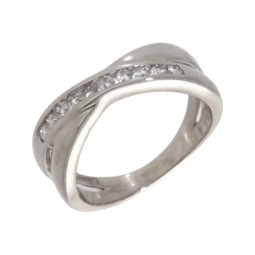 Pre-Owned 9ct White Gold 0.25ct Diamond Crossover Band Ring Size: L½ 9ct gold...
