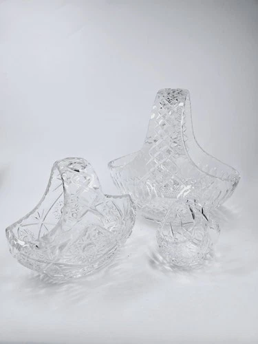 3x Vintage Lead Crystal Basket Bonbon Potpourri Bowls