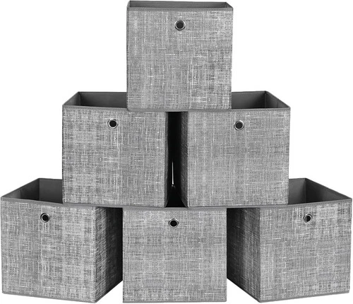 SONGMICS 6 Non-Woven Fabric Storage Boxes 30x30x30cm Foldable Cube Organiser Gre