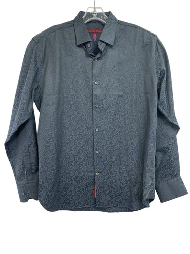 Visconti Black Men Sz Large Blue Paisley Flip Cuff Button Down Shirt (S18) EUC
