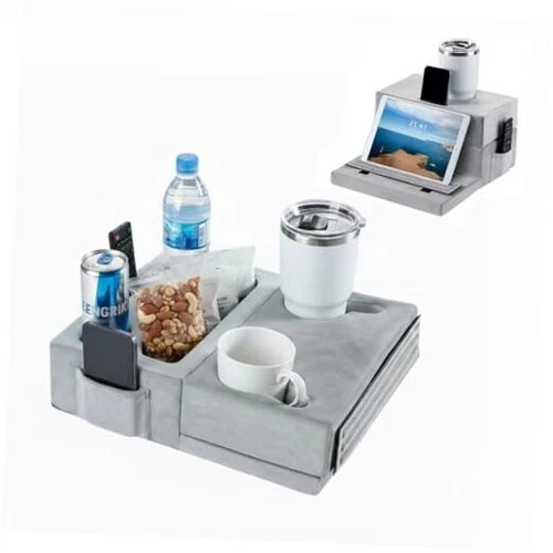 Sofa Cup Holder Tray Pillow - Holds Drinks, Snacks, Remotes & Devices - Cup