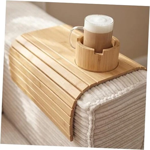Couch Arm Tray for Drinks and Snacks with Detachable Cup Holder and Anti Bamboo
