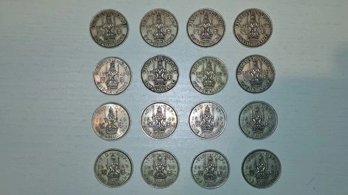 16 x Shilling George VI 1947-1951 Scottish Reverse British Cupro Nickel Coins