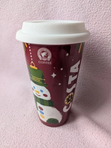 New Costa Coffee Ceramic Christmas Travel Cup Mug Tumbler - Snowman Design 12oz!