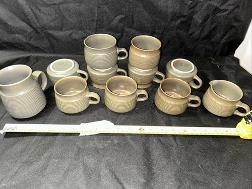 Set Of 11 Denby Langley England GRustic Look Green Coffee Tea Cup Mug Set