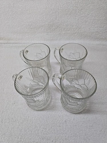 Arcoroc Vintage Canterbury Crocus Glass Coffee Mug Set of 4 Tea Cups 3D USA