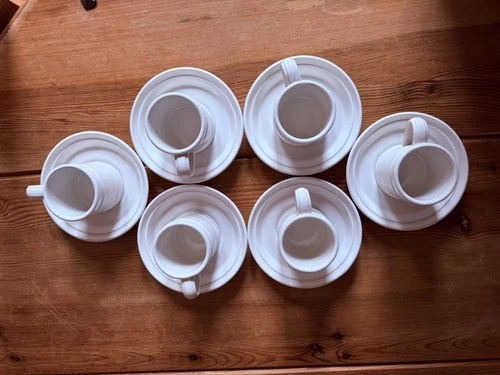 Portmeirion Meridian White 6 Small Coffee Cups and Saucers