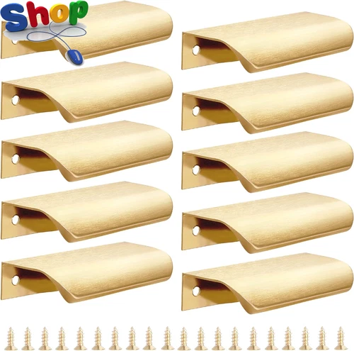10 Pack Gold Kitchen Cupboard Handles - 80Mm Finger Edge Pulls for Cabinets and
