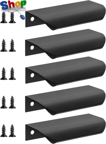 5 Pack Black Kitchen Cupboard Edge Pulls for Cabinets and Drawers, 80Mm Wardrobe