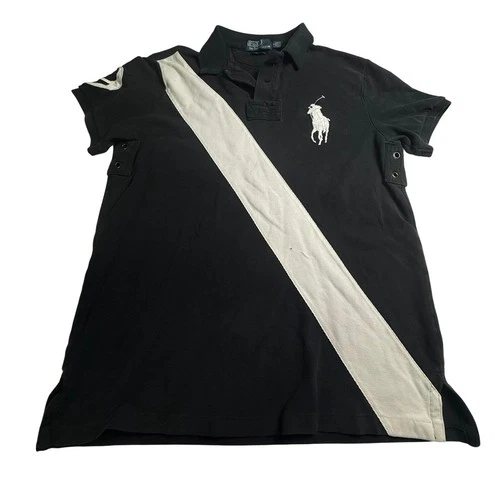 Polo Ralph Lauren Mens Big Pony Sash Polo Shirt Black White Custom Fit Size L
