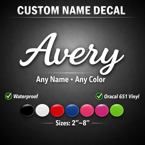 Custom Name Vinyl Decal Personalized Script Sticker Car Laptop