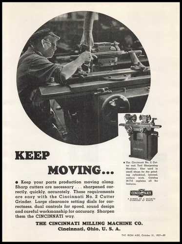 1937 Cincinnati Milling Machine Company Photos Cutting & Tool Sharpener Print Ad