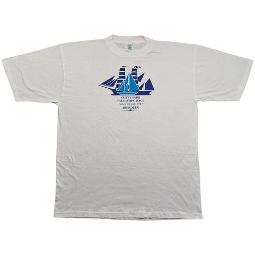 JTS T Shirt L Men's White Vintage CUTTY SARK Tall Ships Race 1997 Graphic Retro