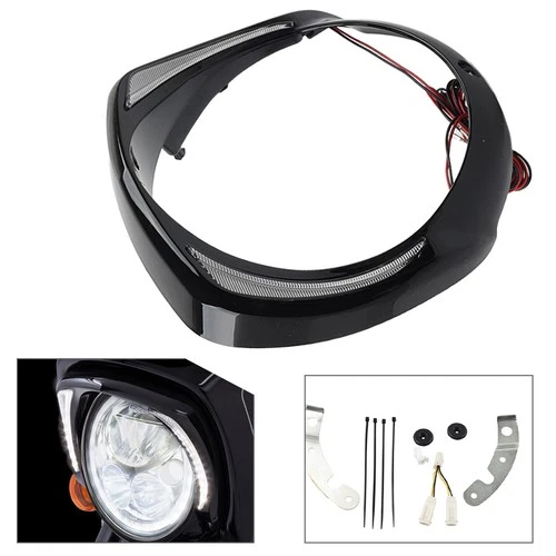 LED Headlight Bezel Visor Trim Ring For Harley Touring 14+ CVO Street Glide
