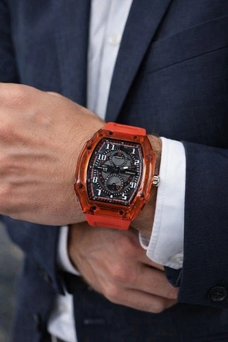 Invicta Men's RACING Cyclone 49mm Transparent Quartz Red Tone Watch New In Box
