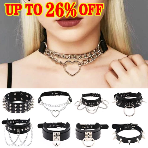 New Women Girls Choker Collar Necklace Ring PU Leather Heart Charm Gothic Punk B