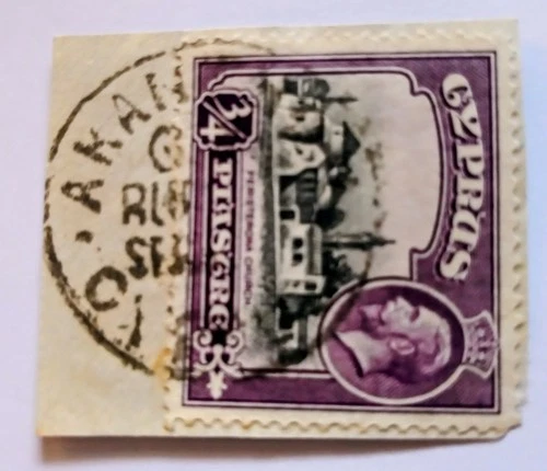 1934 KGV CYPRUS AKANTHOU G.R. RURAL SERVICE POSTMARK CANCEL ON PIECE.