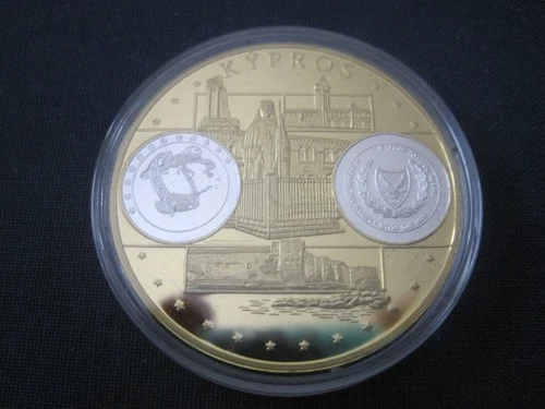 Medal Cyprus Coin 5 Euro 2008 Gold Plated Silver Proof