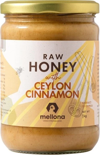 Mellona 100% Raw Natural Honey with Ceylon Cinnamon, Unheated & Unfiltered, Crea