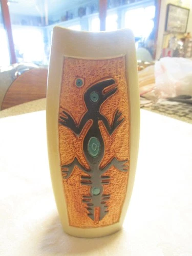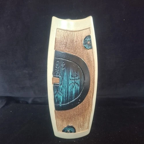 Vintage Art Pottery Vase Da Jing Tao Yi 3-Sided Reliefs Carved Lizards 8”t 1960s