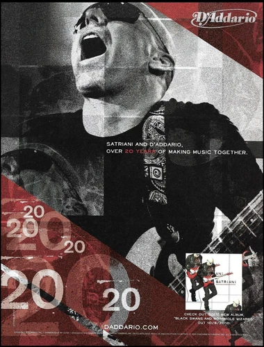 Joe Satriani 20 year D'Addario Guitar Strings advertisement Black Swans ad print