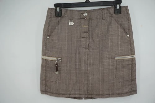 Daily Sports Skort Womens 2 Brown Plaid Golf Zip Pockets Embroidered