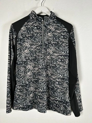 Daily Sports Women’s 1/4 Zip Long Sleeve Activewear Top Black White Abstract XL