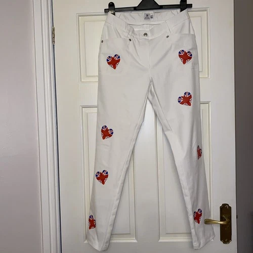 Daily Sports White Stretch Trousers Uk Flag Size 10