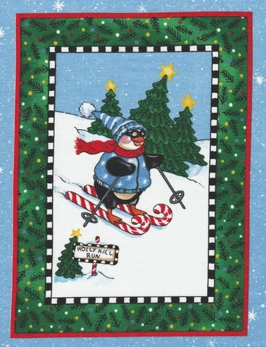 Fabric Picture Panel Christmas Penguins Cute Animals 26 x 20cm 100% Cotton